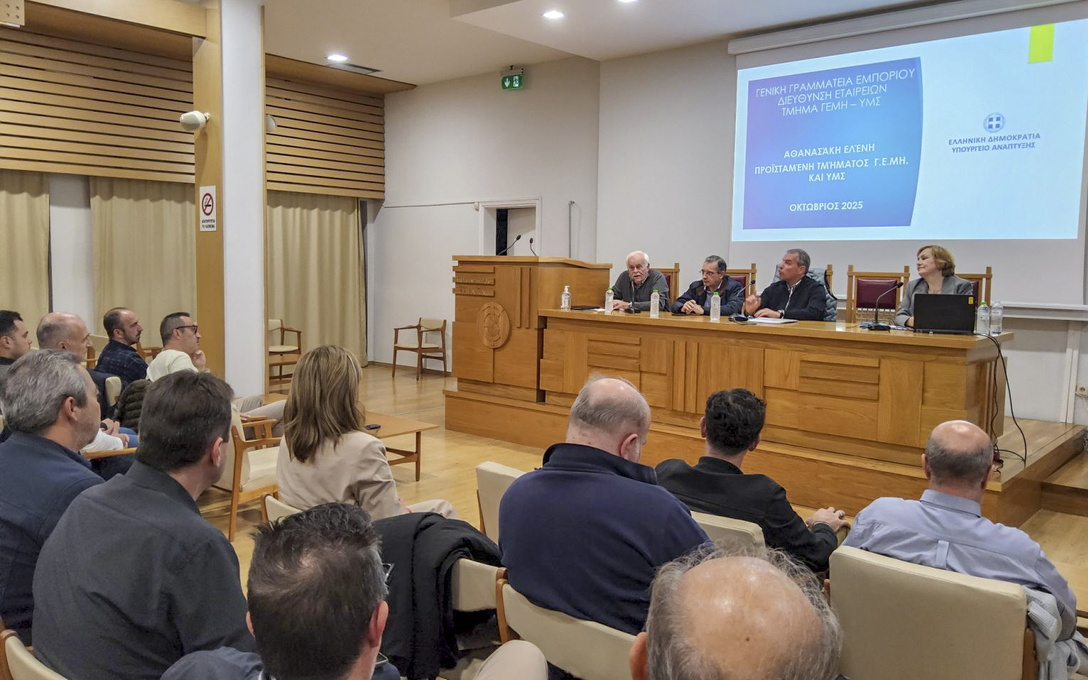 Το θέμα σχετικά με τις υποχρεώσεις των επιχειρήσεων και τα πρόστιμα Γ.Ε.ΜΗ. παρουσίασε και ανέλυσε διεξοδικά η κα Αθανασάκη Ελένη – Προϊσταμένη Τμήματος Γ.Ε.ΜΗ. & Υ.Μ.Σ. της Διεύθυνσης Εταιρειών της Γενικής Γραμματείας Εμπορίου του Υπουργείου Ανάπτυξης. Να διευκρινιστεί ότι η νέα ΚΥΑ και η επιβολή διοικητικών κυρώσεων αφορά τις Κεφαλαιουχικές εταιρίες, Προσωπικές εταιρίες, Συνεταιρισμούς και Υποκαταστήματα αλλοδαπής. Δεν αφορά και δεν επιβάλλονται πρόστιμα σε Ατομικές επιχειρήσεις, Υποκαταστήματα ημεδαπής και ΚΟΙΣΠΕ, ΚΟΙΝΣΕΠ, Συνεταιρισμούς εργαζομένων.