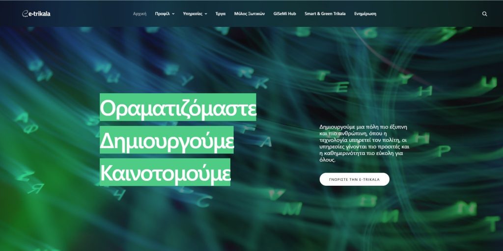Διαφορετικό λογότυπο για την εταιρεία, διαφορετική οπτική, ευανάγνωστη και εύκολα διαχειρίσιμη ιστοσελίδα, τακτοποιημένη και ακριβής, κάνει πιο εύκολη και πιο ελκυστική την περιήγηση: το προφίλ της, οι υπηρεσίες που προσφέρει και τα έργα, η διαχείριση πολιτιστικών χώρων, φυσικά ο Μύλος των Ξωτικών, το Gisemi Hab (ο κόμβος καινοτομίας και επιχειρηματικότητας), τα Smart and Green Trikala, η Cities Net, είναι πεδία στα οποία καθένας και καθεμία μπορούν να επισκεφθούν και να μάθουν περισσότερα για την εταιρεία.