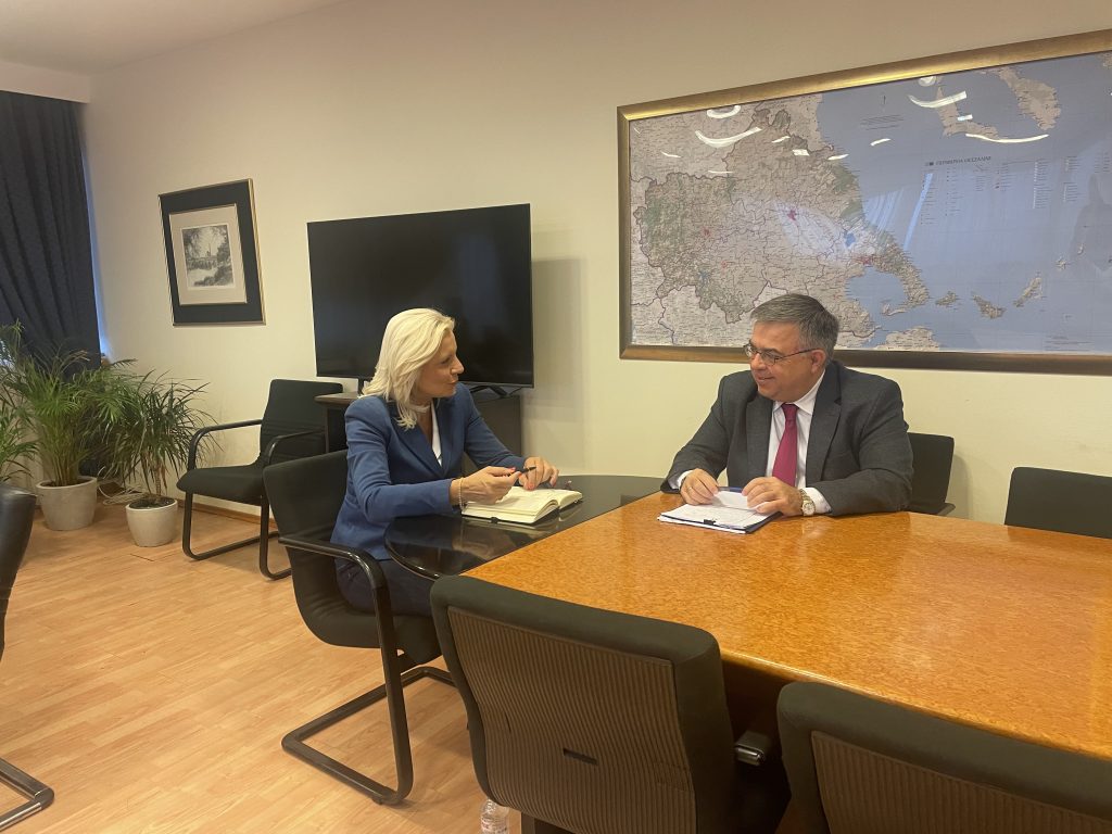 Τον Γραμματέα της Αποκεντρωμένης Διοίκησης Μακεδονίας-Θράκης κ. Δημήτρη Γαλαμάτη δέχθηκε σήμερα το πρωί στο γραφείο της η ΓΓ Αποκεντρωμένης Διοίκησης Θεσσαλίας-Στερεάς Ελλάδας κα Ρένα Καραλαριώτου.